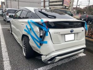 トヨタ プリウス(平成28年式・走行距離10万km) 事故車両(自走可/フレーム・タイヤ損傷あり・全損扱い) ご相談内容 信号待ち中に追突される事故に遭い、...